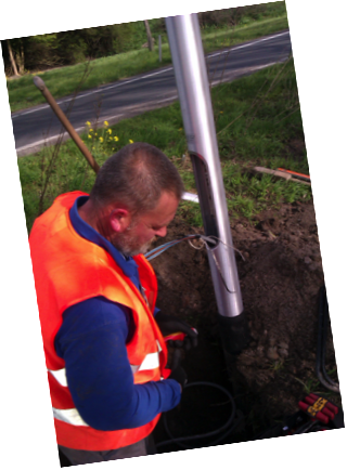 plaatsen van lichtmasten, grondspots, armaturenaanbrengen en aansluiten onder- en bovengrondse bekabeling